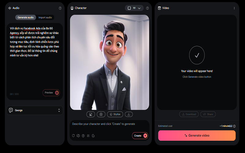 Sếp muốn có một MC ảo chuyên nghiệp cho sự kiện hoặc video mà không cần tốn nhiều thời gian và công sức? Công nghệ A.I đã mang đến giải pháp đột phá: tạo MC ảo chỉ trong 3 bước đơn giản. Từ việc nhập kịch bản, chọn giọng nói, cho đến tạo video hoàn thiện, giờ đây bạn có thể sở hữu ngay một MC ảo ấn tượng để phục vụ cho livestream, video quảng cáo hay sự kiện trực tuyến mà không cần bất kỳ kỹ năng kỹ thuật nào. Cùng tìm hiểu ngay trong bài viết này với Ba Độ Agency nhé!